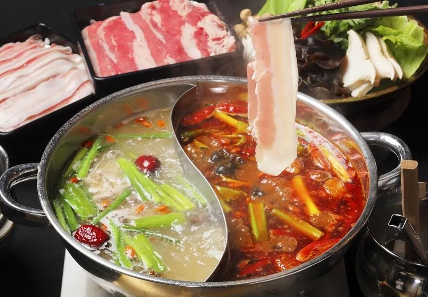 スープは唐辛子や花椒などのスパイスを使用し、痺れる辛さが特徴の麻辣スープと、鰹昆布出汁と野菜の甘みが優しい白湯スープの2種類をご用意。豊富な野菜と牛肉、豚肉をしゃぶしゃぶしながらよくばれる贅沢な火鍋。野菜とお肉の旨みがしっかり染み出たスープに絡めて作る〆のラーメンがおすすめです。