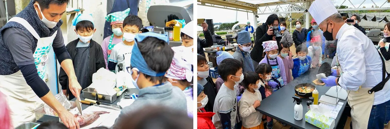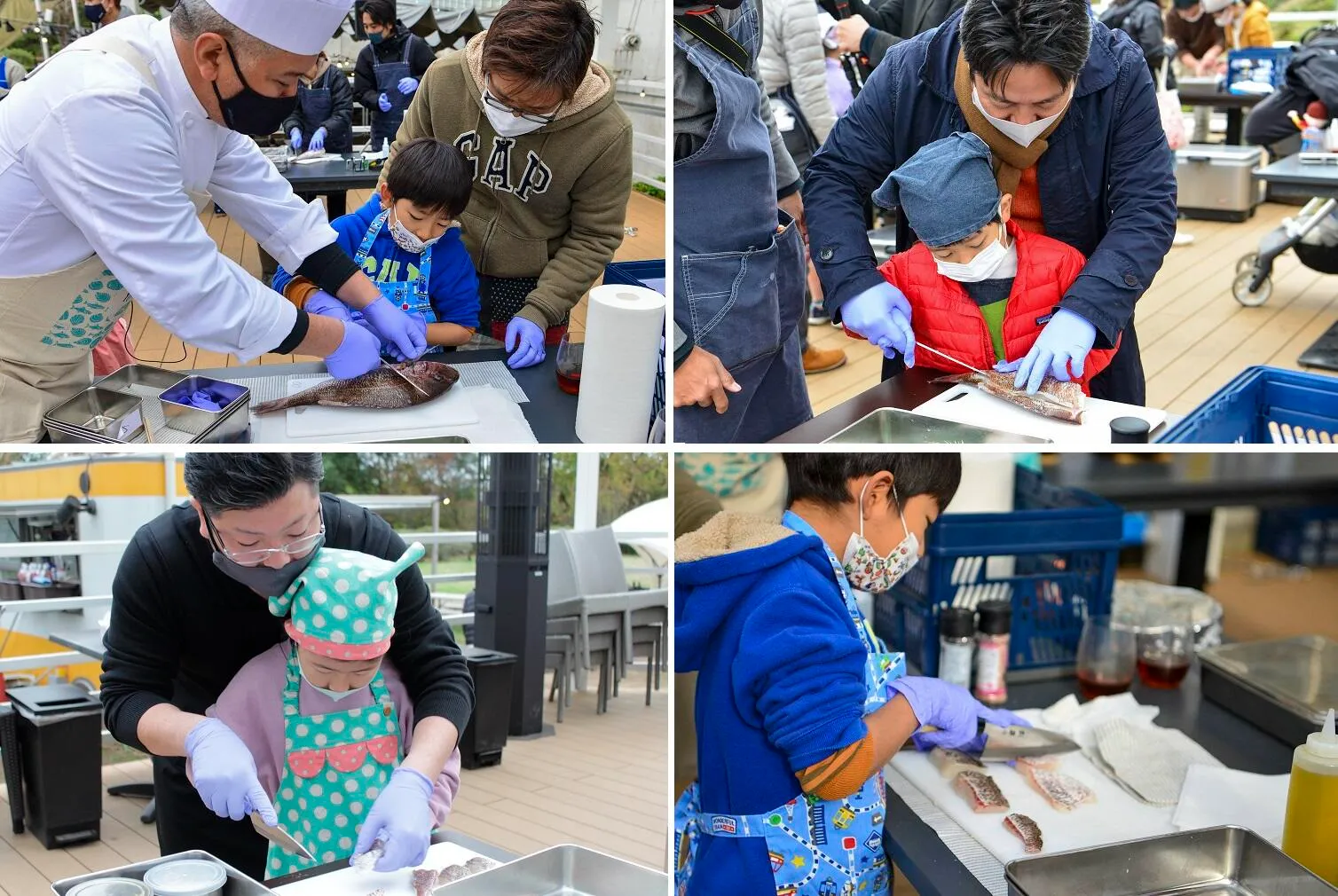 当社は、ASC(⽔産養殖管理協議会)ジャパン、公益財団法⼈世界⾃然保護基⾦ジャパン(WWFジャパン)、株式会社シーフードレガシー(代表取締役社⻑ 花岡和佳男)とともに 、日本財団 海と⽇本PROJECTの協⼒のもと「⽇本さばけるプロジェクト」とコラボレーションし、「ASC認証⿂を捌いて海の資 源について学ぶ"親⼦で知る!つくる!⾷べる!"体験」を2020年11⽉29⽇(⽇)、葛⻄臨海公園内SORAMIDO BBQにて開催いたしました。