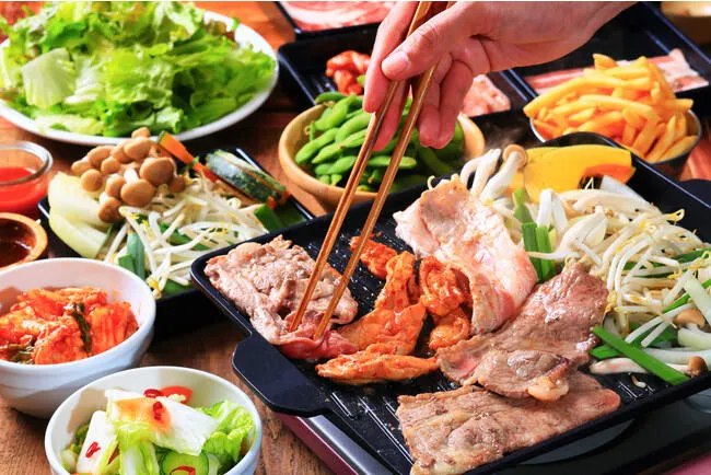 牛バラ肉、豚バラ肉、麻辣豚カルビ、豚肩ロース、旨辛鶏せせり、鶏モモ肉、ミニハンバーグ、ソーセージ、焼きそば、焼き野菜、フライドポテト(サワークリーム、コンソメ、チリ・ガーリック)、CURRY & RICE(甘口カレー、白米)、アイスキャンディー