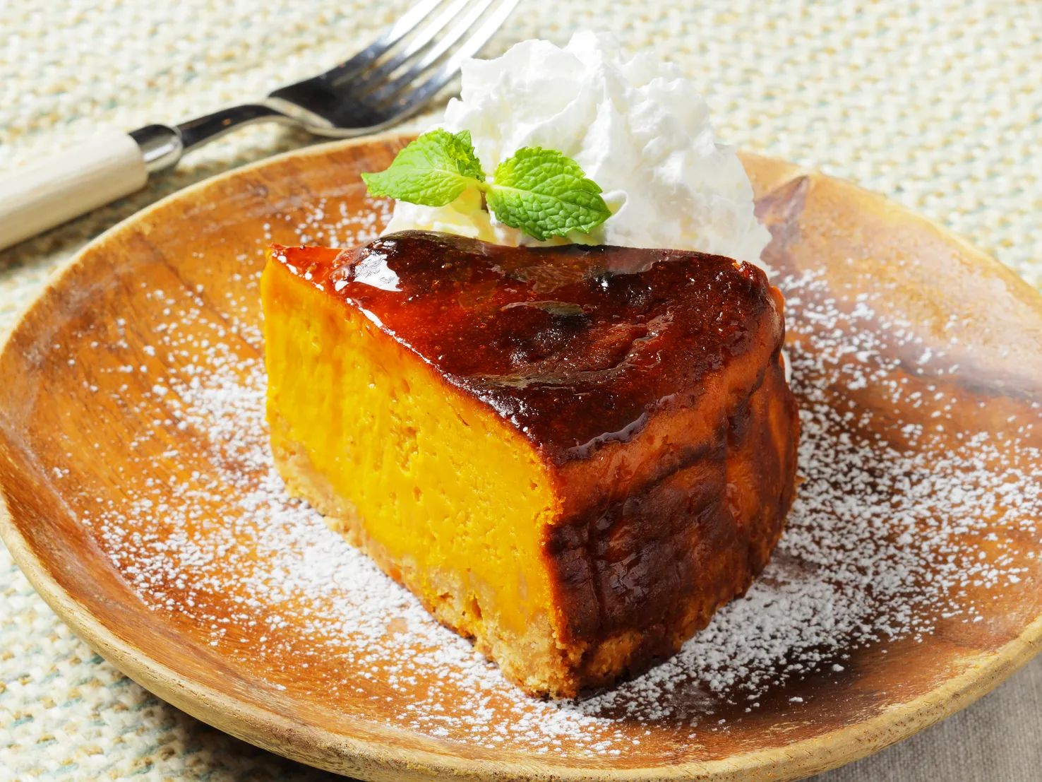 かぼちゃの甘みを生かしたしっとり濃厚なチーズケーキ。お子様にも食べやすいスイーツです。