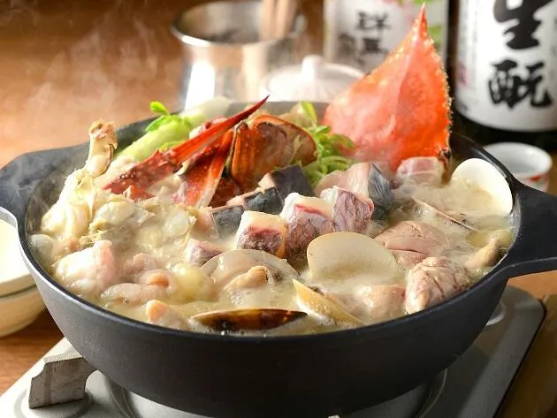鰹だしとコーチンスープに信州味噌と西京味噌、酒粕を合わせ季節の魚介と地野菜を贅沢に使用しました。