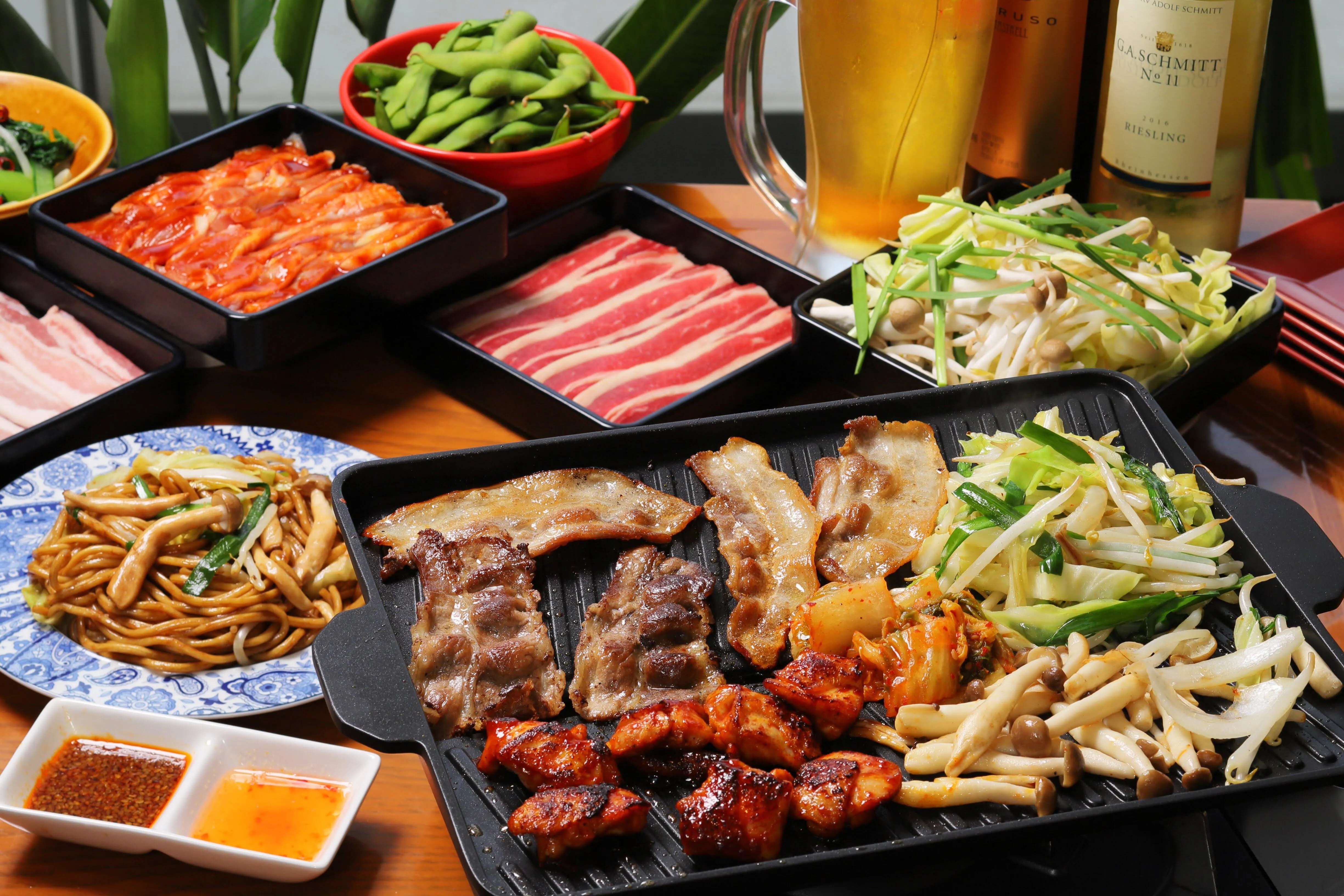 牛、豚バラ、豚ロース、鶏せせりなどのお肉や、彩り豊かなエスニック・タパスがバイキングスタイルで食べ放題。さらに、お子様が大好きなハンバーグやカレー、ポテトやかき氷など、バラエティに富んだメニューがお楽しみいただけます。