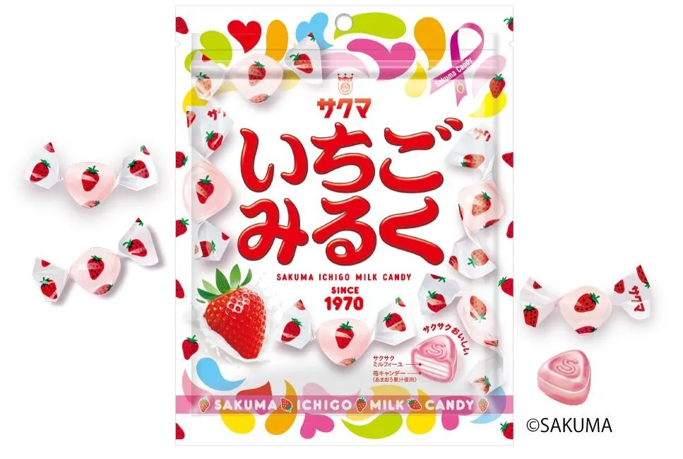 独自のサクサク感が人気のクランチタイプキャンディ「いちごみるく」をはじめ、1908年生まれの「サクマドロップス」、1964年生まれの「チャオ」など、多彩なロングセラー商品を生みだしている製菓会社。